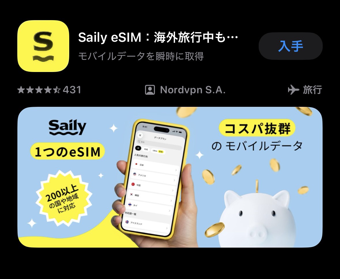 まずは日本(または出発地の地上)にいる間に、スマホにSailyのアプリを入れ、プランを購入しておきます。